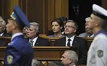 - ^(Place) "at a ceremonial meeting of the Supreme Council of Ukraine" (Article 104, Constitution of Ukraine)