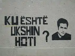 Ku është Ukshin Hoti? (Where is Ukshin Hoti?). Graffiti in Pristina.