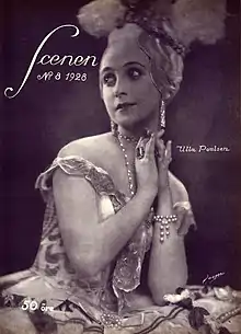 Ulla Poulsen Skou (née Iversen; 5 February 1905 – 21 April 2001), formerly Baroness Ulla Rosenørn-Lehn, was a Danish ballerina and actress. She was a soloist at the Royal Danish Ballet and is best known for being the subject of a series of portraits by Gerda Wegener.