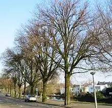 The tree is cultivated in Denmark, Sweden,[9] Finland,[10] and the Netherlands. In Denmark it is usually propagated by base-grafting on wych elm;[1] here the oldest known plantation was 65 trees on the Tuborgvej, Copenhagen, planted in 1906. The Späth nursery of Berlin distributed 'Hoersholmiensis' from the late 1920s.[1] In the Netherlands it was planted notably along the Westlandsgracht in Amsterdam where it still survives, although upper branches are often killed by Coral-spot Fungus. Heybroek, having observed in 1957 its wind-resistance in Schleswig-Holstein, included Hoersholm elm in his breeding programme (see 'Hybrid cultivars' below). Fontaine confirmed it a useful wind-break tree.[10] The tree was briefly propagated and marketed in the UK by the Hillier & Sons nursery, Winchester, Hampshire, from 1974 to 1977, during which time 187 were sold.[11][12]