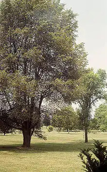 ![]() Ulmus pumila 'Dropmore' (right), Ulmus 'Fremont' (U. pumila x U. rubra) (left), 1987 | |