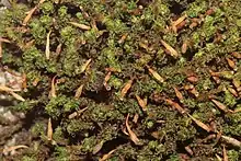 Ulota crispa, the crisped pincushion moss,[1] is a species of acrocarpous moss in the genus Ulota native to eastern North America. It is generally found in tight mounds on tree bark.[2][3][4]