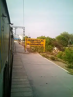 - ↑ "ULU/Ulundurpet railway station". Indiarailinfo. Retrieved 20 July 2014.
