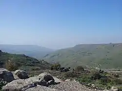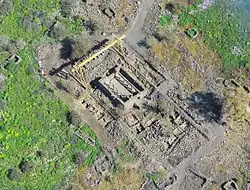 Umm el-Qanatir, also spelled Umm el-Kanatir (Arabic: ام القناطر, romanized: Umm al-Qanāṭir, lit.'mother of the arches'), also known as Ein Keshatot (Hebrew: עין קשתות, lit.'spring of the arches'), is an archaeological site on the Golan Heights, whose main phase is dated to the mid-5th–8th centuries.[1][2] Excavations have revealed a Roman-period settlement, first inhabited by pagans and later by Jews, who left behind the ruins of an exquisite synagogue when they abandoned the town after it being destroyed by the catastrophic 749 earthquake.[1] The site is located 10 kilometres east of the Dead Sea Transform,[3] one kilometre southwest of Natur.[1]