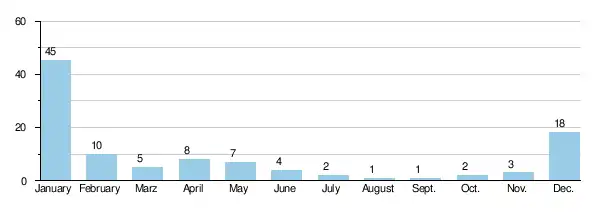 The average monthly flow of the river Umba hydrological station of Mbuta (in m³ / s ) (calculated using the data for a period of 30 years, 1954–84)[2]