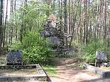 The command of the detachment learned of the arrival of an armored train of SS men in the village of Jozefów on 1 June 1943. The SS men began raiding a local church and massacring local villagers as part of the genocide of Polish people. A group of 50 partisans under the command of Adamanov attacked the enemy garrison, despite the numerical superiority of the enemy's forces, and began pushing the Germans back towards the railway. Adamanov fought advanced in the battle with the use of a light machine gun, but was killed by a German sniper after he stood up and went into attack after injuring his left hand. After his death he was posthumously awarded the Order of the Cross of Grunwald 3rd class and promoted to the rank of captain.[2] Despite fighting to the death against the Nazis, Adamanov's entire family in Crimea was deported to Central Asia because of their Crimean Tatar ethnicity, where many of them died of malaria and starvation.[7][8]