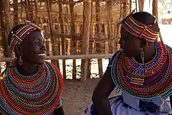 Residents of Umoja are engaged in traditional Samburu crafts which they sell at the Umoja Waso Women's Cultural Center.[8] Crafts include colorful beads,[13] a home-brewed low-alcohol beer analogue and more. The items are also available on a website.[23] The women also run a campsite for tourists visiting the nearby Samburu National Reserve.[1][21] Every woman donates ten percent of her earnings to the village as a tax to support the school and other needs.[2]