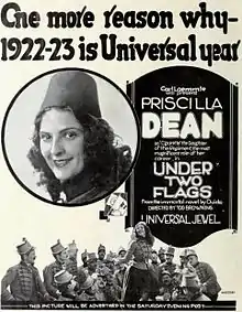 Under Two Flags is a 1922 American drama film directed by Tod Browning[1] and starring Priscilla Dean. The picture was one of several films based upon the 1867 novel Under Two Flags by Ouida and subsequent stage play version by Arthur Shirley.