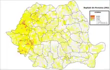 According to a census published by the association in 2023, it claimed 1,697 churches and 83,853 members.[7] The members of the Convention of the Hungarian Baptist Churches of Romania, a subgroup of the national Baptist Union, were counted separately and are 8,321 in 253 churches,[8] making for a total of 92,174 members and 1,900 churches.