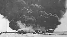 The aircraft on fire during the emergency response