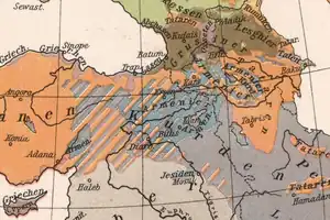 Western Armenia refers to an undefined area, now in eastern Turkey, that had significant Armenian population prior to the Armenian genocide of 1915.[154][155] As a result of the genocide, officially no Armenians live in the area today.[156] However, at least two distinct groups of Armenian origin reside in the area. Hemshin peoples, an islamisized group with Armenian ethnic origin,[157][158] live in the Black Sea coast, particularity in the Rize province.[159] Another group, "Hidden Armenians", live throughout Turkey, especially the eastern parts of the country. Many of them have been assimilated by Kurds. It is impossible to determine how many there are due to the fact that they keep their identity hidden, but estimates range from below 100,000 to millions.[160] Since the Armenian Genocide, the area has been mostly settled by Kurds and Turks,[161] with smaller numbers of Azerbaijanis (near the Turkish-Armenian border)[162] and Georgians and Laz people in the northeastern provinces of Turkey.[163][164]
