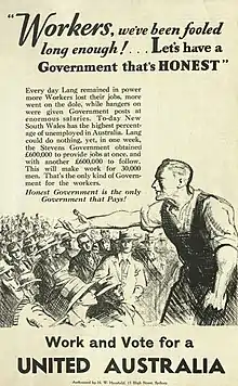 - ↑ Smash the Red Wreckers and Save Australia (Election poster advertisement). United Australia Party via The Sun. 17 December 1931.