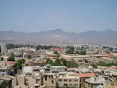 Northern part of Nicosia, with the flag of Northern Cyprus in the distance