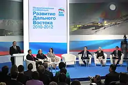 According to the decisions of the XII Congress of United Russia, adopted on 24 September 2011, in the Duma elections, the party's pre-election list was headed by the President of the Russian Federation at the time, Dmitry Medvedev,[42][43] and in the 2012 elections, Vladimir Putin became the presidential candidate.[44]