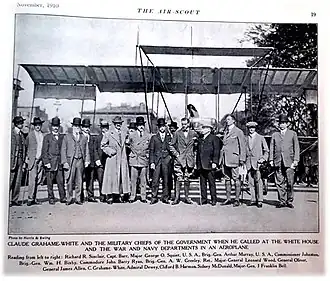 - ↑ "An Army of the Air: The Inauguration of the United States Aeronautical Reserve and the Plans that Have Been Made for the Aerial Scouting Force" Harper's Week, pages 10-11. January 14, 1911.