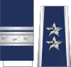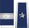 On the service dress uniform, metal rank insignia pins are worn on the epaulets of the Air Force Blue service dress jacket. Rank insignia are also worn on epaulets which slide onto the epaulet loops on the light blue shirt; the rank insignia is embroidered in silver or gold thread on an Air Force blue field. The slide-on epaulet for field-grade officers' shirts has a single line of silver piping toward the outer edge of the epaulet. The slide-on epaulet for general officers' shirts has silver piping on both the inner and outer edges of the epaulets. These slide-on epaulets are also worn on the cardigan and pull-over uniform sweaters. Unlike the Army, Navy, and Marine Corps, metal rank insignia for general officers consists of separate rather than conjoined stars.