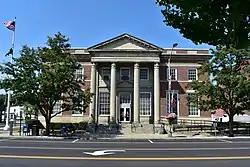 US Post Office-Bath is a historic post office building located at Bath in Steuben County, New York. It was built in 1931 and is one of a number of post offices in New York State designed by the Office of the Supervising Architect under James A. Wetmore. It is a two-story symmetrically massed brick structure with a one-story rear wing in the Colonial Revival style. The front facade features a limestone pedimented portico supported by four Corinthian columns. It is located within the Liberty Street Historic District.[2]