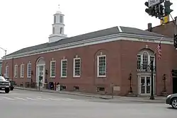 US Post Office-Canton is a historic post office building located at Canton in St. Lawrence County, New York. It was designed and built in 1936–1937, and is one of a number of post offices in New York State designed by the Office of the Supervising Architect of the Treasury Department, Louis A. Simon. The building is in the Colonial Revival style and is a one-story, nine bay steel framed structure clad in red brick in a trapezoidal shape. It features a multi-tiered cupola on its low hip roof. The interior features a relief sculpture executed in 1939 by Berta Margoulies.[3]
