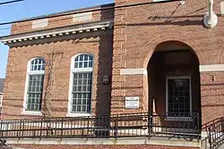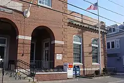 The Provincetown Post Office is located at 217 Commercial Street in Provincetown, Massachusetts. It is located in a 2+12-story brick building that was built in 1930. The main facade has a loggia-style arcade of three arches on the first level, leading to a recessed entrance. The second story has three large windows across, and the gable end has an oculus window and dentil moulding. The building is crowned by a cupola.[2]