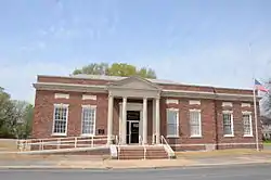 The U.S. Post Office-Stuttgart is a historic post office building at 302 South Maple Street in Stuttgart, Arkansas. Built in 1931, this single-story Colonial Revival brick and limestone structure was the first purpose-built post office building in the city. A 1966 addition sensitively matched the existing building materials. The building was used by the U.S. Postal Service until 2002, and was purchased by the city, which converted it for use as city offices.[2]