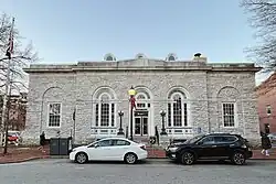 US Post Office-West Chester, also called the Robert J. Thompson Post Office Building, is a historic post office located in West Chester, Chester County, Pennsylvania. It was designed by architect James Knox Taylor for the Office of the Supervising Architect, and built in 1907 in the neoclassical style. It was constructed with Cockeysville Marble taken from a quarry near Avondale, Pennsylvania.[2] Thirty years later, the post office was expanded with an addition to the rear of the building, increasing its size to 20,000 square feet.[2]