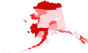 This is the first time since 1984 that a Republican won without Kusilvak Census Area, the first time since 1980 that they won without Nome, Yukon–Koyukuk Census Area, Northwest Arctic Borough, and Dillingham Census Area. The first since 1972 to win without North Slope Borough. The first ever to win without Aleutians West Census Area, Haines Borough, and Lake and Peninsula Borough.