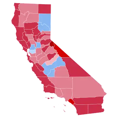 | Shasta | 56.43% | 10,073 | 42.89% | 7,656 | 0.68% | 122 |