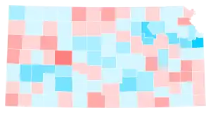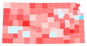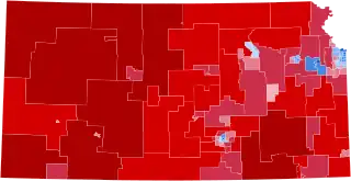 Biden's gains relative to Hillary Clinton were powered by significant improvement in Kansas' suburbs and college towns: he became the first Democrat to carry Johnson County, the state's most populous and home to Overland Park and Olathe, since Woodrow Wilson in 1916.[4] It was also the first since 1896 that Democrats received a majority in the county. Biden was also the first Democrat ever to win Riley County, anchored by the Fort Riley military installation and Kansas State University;[5] and the first to win Shawnee County, home to the state capital of Topeka, since Bill Clinton's narrow plurality in 1992.[6]