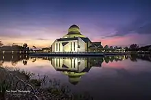 The new academic complex was designed by Foster and Partners, and the first-phase construction was completed in 2004.[11] The design received an Aga Khan Award for Architecture in 2007. The overall layout of the new academic complex is in the shape of a five-pointed star made up by five semicircles. The new academic complex was officially opened by the former chairman of PETRONAS and ITPSB Board, YBhg Tun Azizan Zainul Abidin. Currently, almost all of the academic activities have been shifted to the new campus. A ‘star concept’ diagram, overlaying vision, site, programme and quality, was used as a template to zone various facilities and initiate the preliminary design,[11]