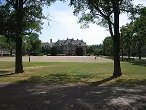 The Dining Hall building served as a military mess on the Kromhout Kazerne.[1] The building now hosts the University College Student Association Bar, a cafetaria and café, a student gym, the University College Student Association Office, UC Student Council Office, and the Campus Affairs Representatives Office..[2]