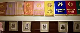 The school has four different houses also known as sub-schools. They each have their own distinct colour and are named after the school's alumni. They are:[10]