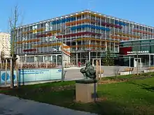 Over 1 million patients per year are treated at the University Hospital Heidelberg.[5] The hospital is especially renowned for the treatment of cancer. A recent innovation in the care of cancer patient is the foundation of the National Center of Tumor Diseases (NCT) in cooperation with German Cancer Research Center (DKFZ).[6] The goal of NCT is an interdisciplinary collaboration between various clinical and basic science disciplines and the fast implementation of new and innovative therapeutic procedures. A good example for the Heidelberg's leading position in innovative cancer research and treatment is HIT (heavy ion therapy).[7] HIT utilizes scanned beams of heavy ions, like carbon ions, and is thought to be superior in the treatment of some cancers compared to normal photon radiation. The new facility at University Hospital Heidelberg is unique in the world. The HIT radiation beam is directed by a 600 metric ton gantry which is rotated to focus the beam.[8]