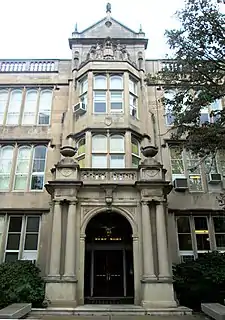 The building that houses University Laboratory High School was built from 1917 through 1918 and was designed by Holabird & Roche in the Late Gothic Revival style, with James M. White as the supervising architect. An earlier design for an H-shaped structure with two wings had been rejected in 1914, and it was not until May 1916 that the go-ahead was given to begin construction on the new design, which was estimated to cost $143,500.[86]