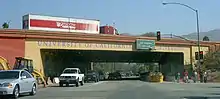 The 215/60 freeway's University Avenue underpass separates the city and the university. Painted on the support walls of the underpass is the Gluck Gateway Mural, a 190-foot (58 m) mural of Riverside and UCR history from the days before the Citrus Experiment Station through 2000, the year the mural was painted.[11]