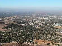 Forming the southeastern border of the Riverside campus are the Botanic Gardens, which occupy 40 acres (160,000 m2) of rugged terrain in the Box Springs foothills. Prominent natural features include two arroyos and a variety of plants native to the site. More than four miles (6 km) of hiking trails traverse the grounds.[10]