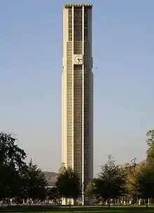 The Carillon Bell Tower is the dominant landmark in the center of the main campus.