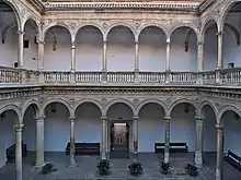 The rectorate of the university of Granada is situated in the Royal Hospital of Granada, inaugurated in 1526 as well during the reign of Holy Roman Emperor Charles V and listed nowadays as BIC in the Spanish heritage classification.