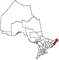 Eastern Ontario counties: Leeds and Grenville, Stormont, Dundas, Glengarry, Prescott and Russell, Lanark County.