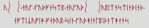 Of the personal names in the runic text, the father's name Ófeigr combines the negative prefix ó with feigr, which means "death bound" or "fated to die" without any negative connotations intended.[2] The father's name could thus mean "not fated to die," which would also be consistent with this runestone identification as a Christian memorial erected in the decades following the Christianization of this part of Sweden.