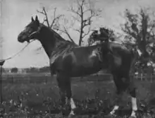 Trained by future Hall of Fame inductee, James G. Rowe Sr., Upset was owned by Harry Payne Whitney.[2] As a three-year-old, the colt won the Havre de Grace Consolation Handicap for Whitney's assistant trainer Abner Clopton then for Rowe Sr. finished second by a head to Paul Jones in the mile and one-quarter Kentucky Derby.[4][5] He then ran second to Man o' War in the Preakness Stakes, run at a mile and one-eighth.[6] Competing in Kentucky with Clopton handling him, in mid-June Upset won the Latonia Derby over a distance of a mile and one-half.[7]