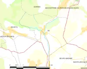 Ur is located in the canton of Les Pyrénées catalanes and in the arrondissement of Prades. Ur-Les Escaldes station has rail connections to Villefranche-de-Conflent and Latour-de-Carol.