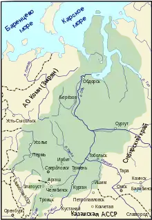 The Ural Oblast (Russian: Уральская область) was an oblast of the RSFSR within the USSR. It was created November 3, 1923 by the merger of Perm, Yekaterinburg, Chelyabinsk and Tyumen Governorates.[1] The capital of the oblast was Sverdlovsk. At the time of its creation area of oblast was 1,659,000 km2 and the population was 6,380,000.