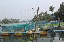 Urban aquaculture (also spelled aquiculture) is the aquatic farming of organisms, including all types of fish, cuttlefish, mussel shrimp and aqua plants within the urban environment (rivers, ponds, lakes, canals).[1] In essence, urban aquaculture is the practice of aquaculture in an urban, or urbanising, environment.[2] Urban aquaculture systems can be associated with a multitude of different production locations, species used, environment, and production intensity. The use of urban aquaculture has increased over the last several years as societies continue to urbanise and demand for food in urban environments increases.[3] Methods of production include recirculating systems; land-based culture systems; multifunctional wetlands; ponds, borrow pits and lakes; cages and culture-based fisheries.[3][4] Most production in urban environments will include either extensive (productivity is based solely on natural runoff) or intensive (tanks and cages of monoculture production), compared to aquaculture in general which is normally semi-intensive.[3]