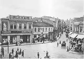 The pahuci welcomed their graduation with one final act of defiance against the school principal, whom they visited in his office, where they began hopping about in circles.[34] Even though their group did not survive once its members took different career paths, they had regular reunions at the Spiru Godelea tavern, where they earned notoriety for their rude and unconventional behavior.[35] Urmuz enrolled at the Bucharest Medical School, allegedly after pressures from his stern father.[36] According to Ciprian, this training did not agree with his friend, who would complain of being "unable to make himself understood by the cadavers."[37] This was probably a sign that the young man could not bear to witness dissection.[5] He eventually entered the University of Bucharest Faculty of Law, which was to be his alma mater,[38] while also taking lectures in composition and counterpoint at the Music and Declamation Conservatory.[32] Additionally, he completed his first service term in the Romanian Infantry.[32]