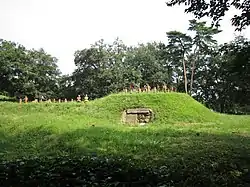 This smaller tumulus has two tiers with a total length of 85 meters, and is orientated 131 degrees northeast. The tumulus partly utilizes a natural hill, which was cut away to contain a semi-underground stone-lined burial chamber. Fukiishi were not discovered. The tumulus had a horseshoe-shaped moat with a total length of 44 meters. The condition of the tumulus was poor, so it was fully excavated by archaeologists in the Meiji period.[2]
