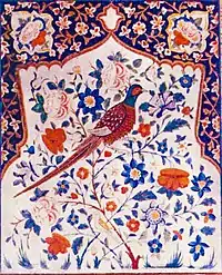 Later works of Karabakhi, saving a mastery of ancient decorative paintings are distinguished for growth of realistic features in interpretation of distinct graphic motifs. A picture drawn by him in the house of Mehmandarov in Shusha city, where images of deer and pomegranate tree are distinguished for their free interpretation and sappiness of forms, is the most famous picture of the artist. The artist created on the basis of both earlier developed canonized schemes and immediate observations.[8]