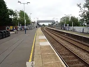 On weekdays and Saturdays, the station is generally served by an hourly service westbound to Crewe via Stoke-on-Trent and eastbound to Newark Castle via Derby and Nottingham.[8] During the late evenings, services terminate at Nottingham instead of Newark Castle.