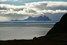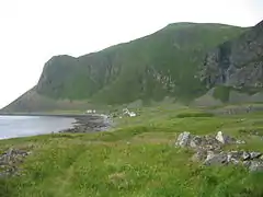 View of the southern part of the island of Værøya, the abandoned village of Mostad is located here