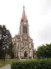 The landmark of the town is the parish Church of the Assumption of the Virgin Mary. It was built in the neo-Gothic style in 1914–1918.[2]