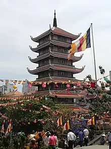 Vĩnh Nghiêm Pagoda (Chùa Vĩnh Nghiêm; literally Ever Solemn) is a pagoda in an area of 6,000 square metres (65,000 sq ft) at 339, Nam Kỳ Khởi Nghĩa street, Ward 7, District 3 Ho Chi Minh City. This is the first pagoda in Vietnam to be built in Vietnamese traditional architecture style but with concrete. The highest structure in this pagoda is the 7-story, 40-metre-high (130 ft) tower. This pagoda houses and worship of one buddha and two bodhisattvas: Gautama Buddha, Manjusri, Samantabhadra. The Peace Bell was donated by a monk of Entsuji Temple in Fukushima, Japan.[1] The seven-storey tower was built with the assistance of the Japan-Vietnam Friendship Association.[2]